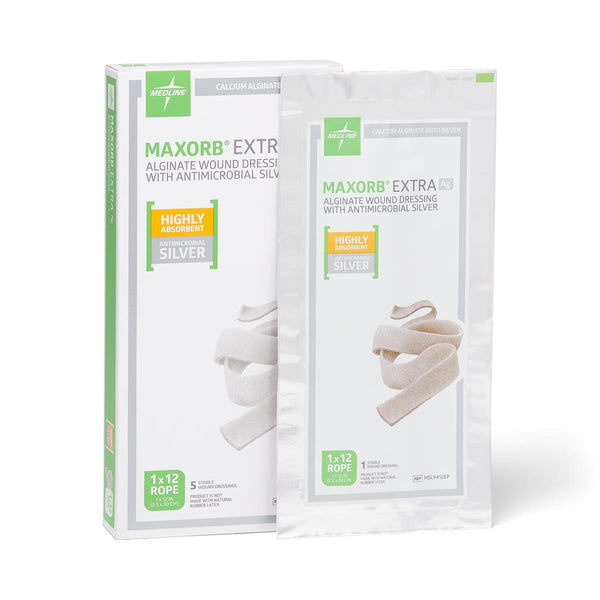 - Medline Maxorb Extra AG+ CMC / Alginate Dressing, 1" x 12'' Flat Rope, 60MSC9412