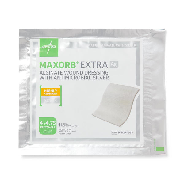 - Medline Maxorb Extra Ag+ CMC / Alginate Dressings, 4" x 4-3/4", 60MSC9445