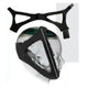 Adjustable neoprene chinstrap thin adjustable strap attaches at the top of the head. Thicker bottom strap attaches to itself at the back of the head.