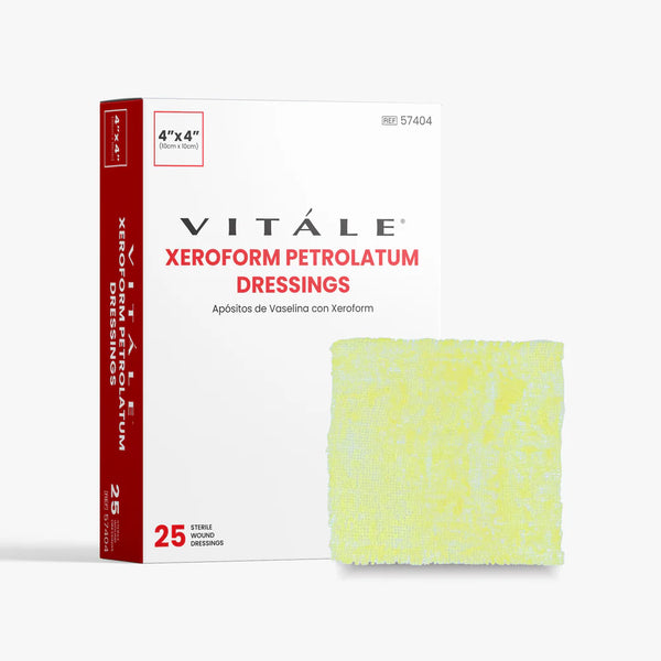 The CellEra Vitále® Xeroform Petrolatum Dressings are specifically designed to provide superior wound care by combining the soothing and protective properties of petrolatum with the antimicrobial benefits of Xeroform (Bismuth Tribromophenate). These dressings are made from fine mesh gauze impregnated with 3% Xeroform in a petrolatum base, which creates a moist environment that is essential for optimal healing. The nonadherent nature of the dressings ensures painless removal and minimal disruption to the wound bed, making them an excellent choice for a wide variety of wound types. Whether used for lacerations, skin graft sites, newly sutured wounds, or minor burns, Vitále® Xeroform Petrolatum Dressings provide a reliable and effective solution for both healthcare professionals and at-home care. Additionally, the dressings can be easily cut or folded to fit the specific wound site, ensuring a secure and comfortable application every time.