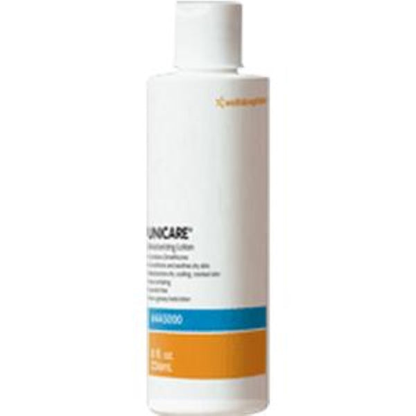 Smith & Nephew UniCare Moisturizing Lotion soothes, conditions, and moisturizes dry skin. The lotion is completely pH-balanced, non-irritation, non-sensitizing, and is non-toxic. Simply rub the lotion easily onto the skin and then allow the lotion to quickly absorb. Unicare is recommended for patients undergoing radiation therapy who have symptoms of dry, cracked skin.