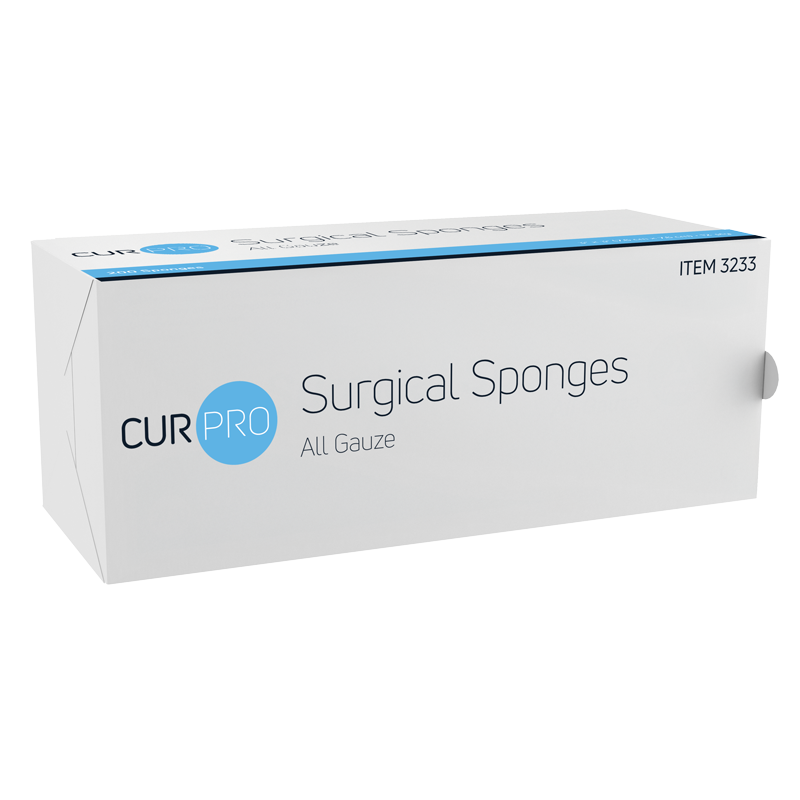 • Sterile sponges packaged in peel-down pouches and dispenser boxes