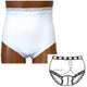 OPTIONS™ Split-Cotton Crotch with built-in barrier/support, white, left-side stoma, Small 4-5, hips 33" - 37". Designed for 24-hour wear. Perfect for intimate moments and active daywear, and sleeping. Split allows air to flow to body. Split-crotch also separates automatically for urination when knees spread apart. 90% Cotton/10% Lycra. Ostomy Barrier/Support 100% Cotton-absorbs/wicks moisture away from skin.