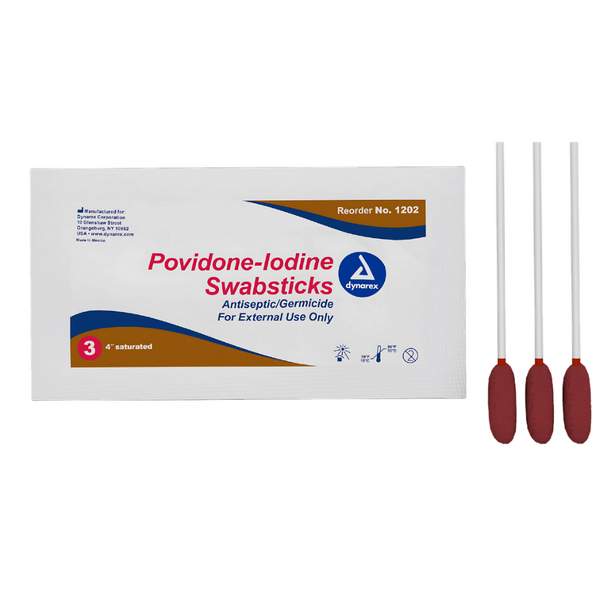 Dynarex 10% USP Povidone-Iodine 4 in. Swabsticks, Skin Antiseptic/Germicide, First Aid Antimicrobial