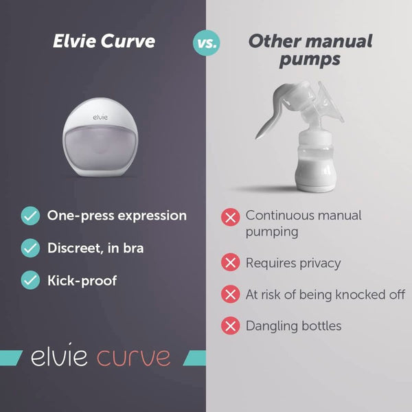 The Elvie Curve Manual Breast Pump is designed for moms who want a hands-free, low-effort way to capture let-down milk without wires, power, or continuous pumping. Its in-bra, contoured silicone design fits securely and discreetly inside most nursing bras, allowing milk collection while breastfeeding, pumping on the opposite side, or whenever your breast feels full. The one-press expression system creates natural suction to gently draw milk, while the Comfort Control Valve lets you adjust and release suction for easy, comfortable removal. Lightweight, travel-ready, and made from BPA-free, food-safe silicone, the Elvie Curve helps you collect more milk with minimal setup and no disruptions to your routine.