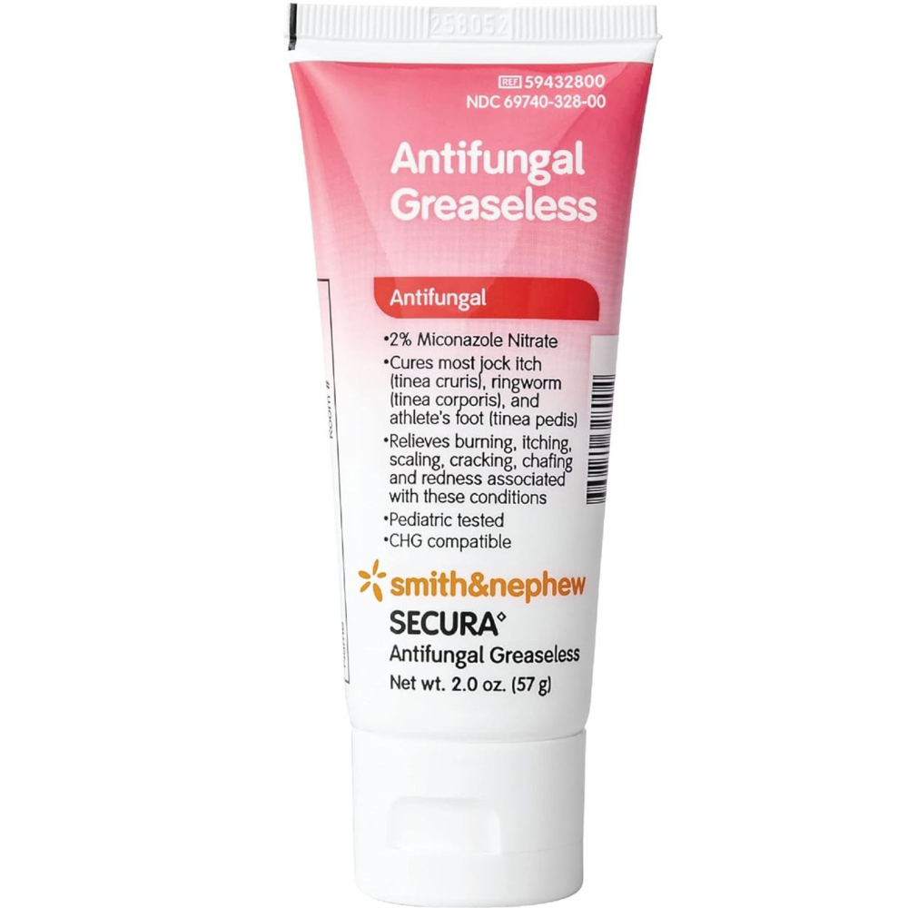 Smith & Nephew Secura Antifungal Greaseless Cream 2 oz is a clinically formulated topical antifungal cream designed to treat and prevent athlete’s foot, jock itch, ringworm, and other superficial fungal skin infections. This greaseless 2% miconazole nitrate cream absorbs quickly without leaving a heavy residue, providing fast-acting relief from itching, redness, scaling, and burning. Ideal for home care, nursing facilities, hospitals, and long-term skin protection, Secura offers effective antifungal treatment while maintaining skin comfort and moisture balance.